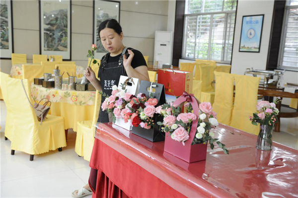 图为与会干职自己动手制作花盒和花篮。图片来源:常德文明网