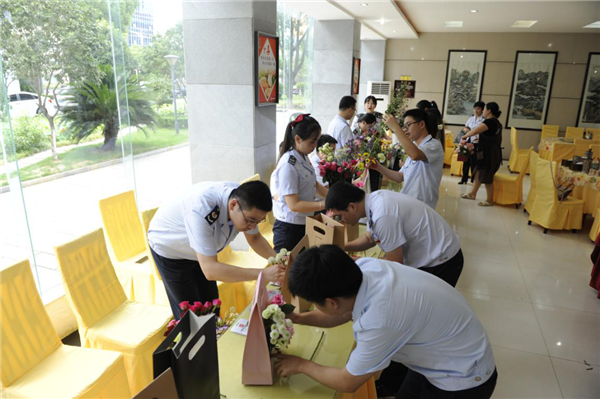 8月20日下午,国家税务总局澧县税务局机关食堂内外弥漫着鲜花的芬芳,在“七夕”节到来之际,县局机关党委(党建工作股)组织开展“浪漫迎七夕·插花送真情”主题活动,希望通过插花制作,让与会干职感受插花制作的快乐。更借用花木来抒发税务干部的高雅情怀,以花感人,以花育人,活动吸引了县局机关各股(室)、城区各税务分局(所)20余人参加。