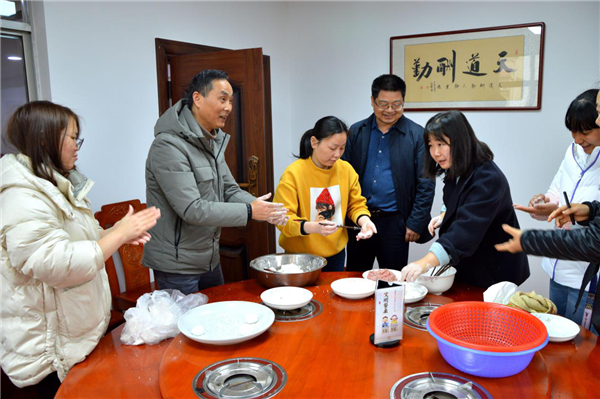 猜完灯谜后,大家又一起来到食堂,开始包汤圆。食堂师傅拿出提前准备好的糯米粉、瘦肉馅,经验丰富的同事开始揉面,示范做汤圆的方法,其他人纷纷效仿,其乐融融,一块块白白的糯米面在手中团成一个球,压成一个饼包上馅,做成诱人的汤圆。中午,大家吃着自己亲手制作的汤圆,感叹不一样的味道。每个人的脸上都洋溢着过节的喜庆。
